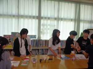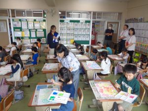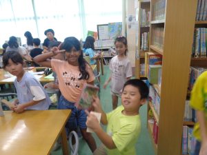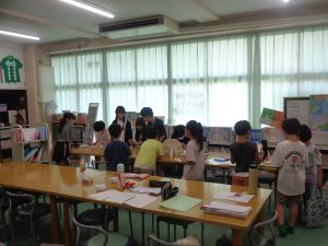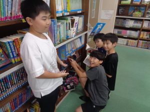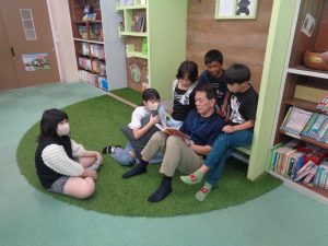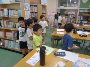 今日の業間休みの様子です。本を読もうと図書室に子供たちがたくさん来ました。図書委員会の人たちが当番で貸し出しをしてくれています。先生が読み聞かせをしてくれていました。本は、人間の心の栄養です。みんなでたくさん本を読んで、心を豊かにしましょう!