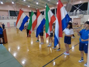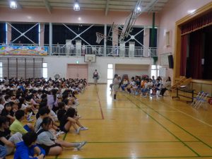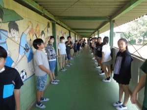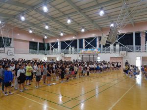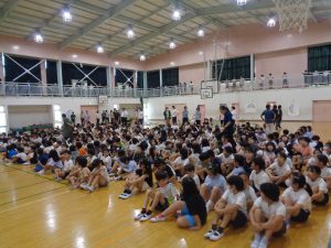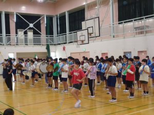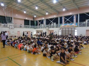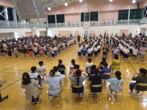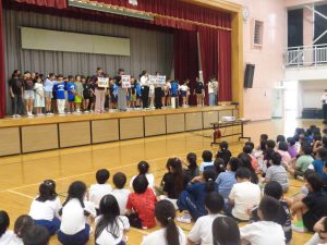 来週の月曜日(10月6日)から、姉妹校交流としてハワイ・ホノルル市にあるノエラニ小学校の皆さんが境小学校に来校されます。それに向けて、全校児童で「ハッピーウェルカム集会」を開催します。本番に向けて、月曜日の練習に続き、全校でのリハーサルを行いました。プレゼントを送ったり、歌を歌ったり、鼓笛演奏をしたりと、子どもたちはどの活動にも真剣に取り組んでいました。
