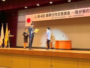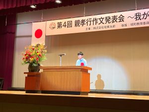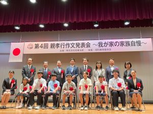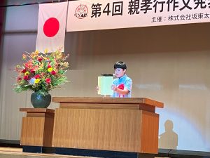 9月20日(土)に、株式会社坂東太郎様の主催による「第4回親孝行作文発表会〜我が家の家族自慢〜」が開催されました。本校からは、優秀賞に選ばれた6年生児童が参加して、多くの人の前で堂々と作文を発表しました。