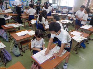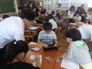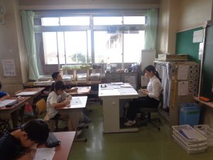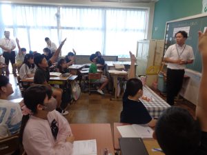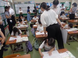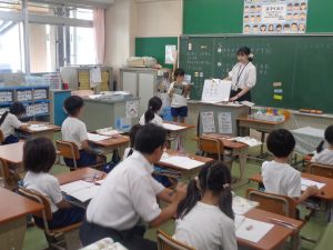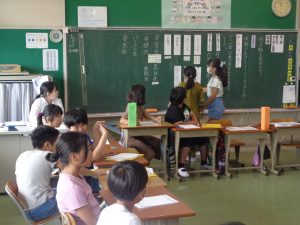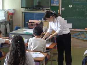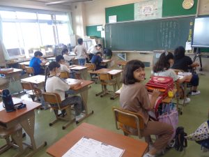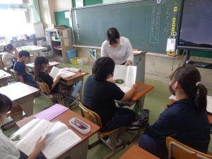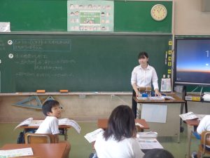 4年生に来ている教育実習生が、今日は、朝の会から授業、給食、帰りの会まで1日担任をする日でした。子供たちは、楽しそうに先生と授業に取り組んでいました。
