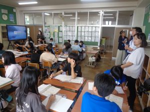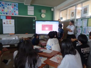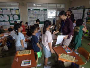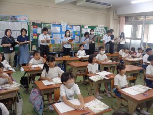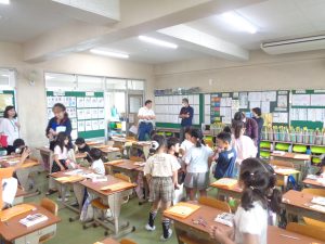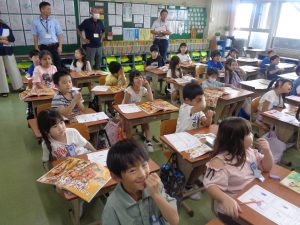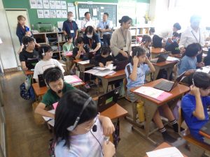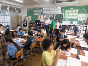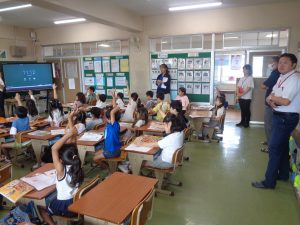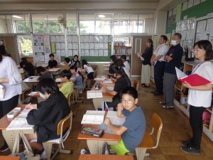 今日は、3名の学校評議員の方々が来校され、1年生と5年生の授業を参観してくださいました。子供たちが落ち着いて授業に取り組んでいる様子や、5年生の海外との1対1のオンライン英会話の様子に、非常に感心されていました。