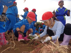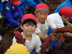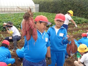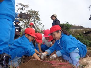 本日、2年生が木村農園さんのご協力のもと、さつまいも掘りを体験しました。子どもたちは、掘っても掘っても出てくるさつまいもに夢中になって作業していました。「こんなに大きいのが取れたよ!」「まだまだ出てくるよ!」と、目を輝かせながら声をあげ、たくさんの笑顔があふれていました。