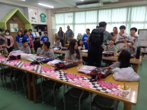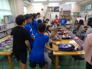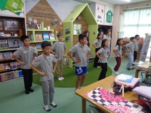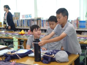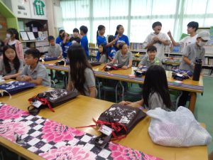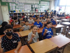 今日から、ハワイ・ホノルル州のノエラニ小学校の子供たちと先生方が境小学校に来て、一緒に学んだり、遊んだりします。まずは、今日の朝の様子を紹介します。