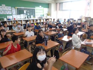 ノエラニ小学校の皆さんを歓迎する「ハッピーウェルカム集会」が開催されました。境町長をはじめ、議長、教育長、議会の皆様、町関係者の皆様、他校の校長先生方など、多くの方々にご出席いただき、盛大に歓迎することができました。心温まる、素敵な集会となりました。
