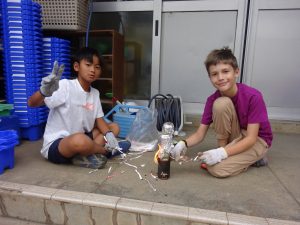 ノエラニ小学校のみなさんとの交流2日目は、5年生と一緒に350mlのアルミ缶を使った「サバイバル飯炊き」に取り組みました。校長先生のご指導のもと、災害時にも役立つ力を身につけることができました。
