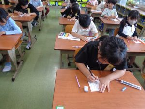 今日から後期がスタートしました。朝のあいさつ運動では、登校してくる児童の元気な「おはようございます」の声が校門に響いていました。授業の様子を見ても、どの学年・学級もとても落ち着いており、「後期もがんばるぞ」という意気込みが伝わってきました。