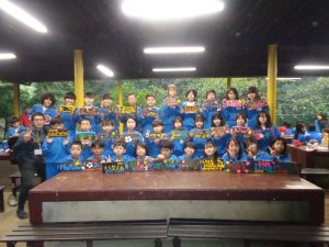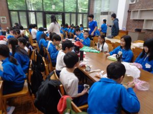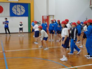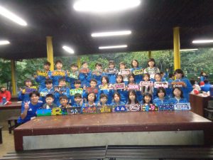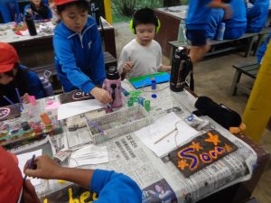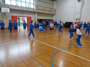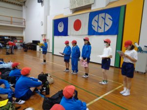 <プレイハウスでレクレーション>オリエンテーリングの予定でしたが雨のため、室内で活動しました。