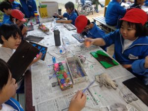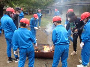 <焼き板作り> 真っ黒になりながら、世界に一枚しかない素敵な焼き板を作りました。