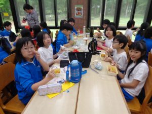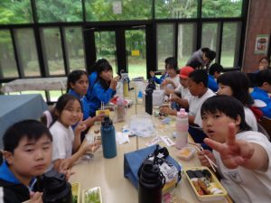 5年生の宿泊学習1日目の様子を紹介します。あいにく雨が降ったりやんだりの天気でしたが、全員元気に活動していました。