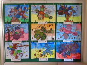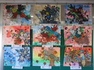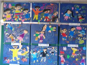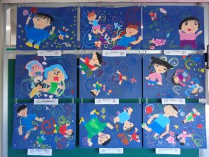 今日は、各クラスの廊下に掲示されている作品を少しご紹介します。子どもたち一人ひとりが工夫を凝らし、心を込めて制作しました。どれもとても素敵な作品ばかりです。