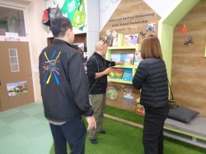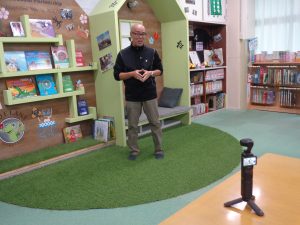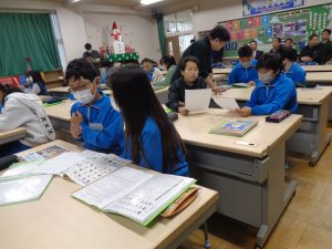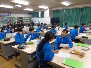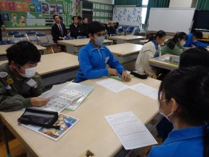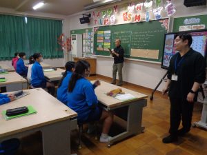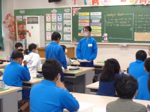 本日、ハワイからテレビ局のキャスター、ホノルル市議会議員、そして通訳の方が来校されました。日本、特に境町の小学校でどのような英語学習が行われているのかを紹介する現地テレビの特集取材の一環として、本校を訪れたものです。境町とハワイ・ホノルルは姉妹都市として交流が深く、6年生の英語の授業や、図書室のノエラニ小学校コーナーを熱心に見学し、テレビカメラに収めていました。