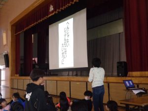 12月9日(火)、全校で「なかよし(人権)集会」が行われました。