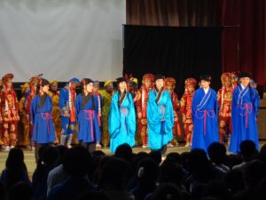 12月10日(水)、全校で芸術鑑賞会を行いました。中国の伝統芸能である「京劇」を日本全国で公演し普及活動をされている新潮劇院の皆様に来校していただき、6年生の代表児童とともに、すばらしい演技を披露していただきました。12月4日のワークショップに続き、この日は午前中にリハーサルや舞台裏の見学、メイクや衣装合わせなどを行い、新潮劇院のスタッフの方々が手取り足取りていねいに指導してくださいました。午後の本公演では、迫力ある演技を披露してくださり、約1時間の公演はあっという間に感じられるほどでした。一緒に出演した6年生も堂々とした演技で会場を大いに沸かせていました。新潮劇院の団長様をはじめスタッフの皆様方、本校児童のために感動あふれる演技と貴重な体験の機会をご提供いただき、誠にありがとうございました。
