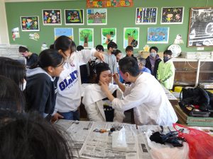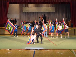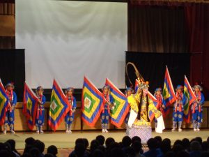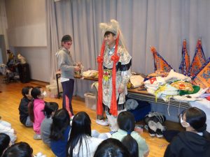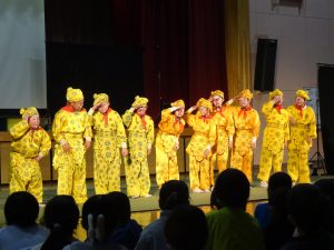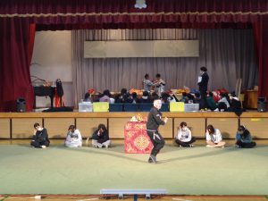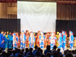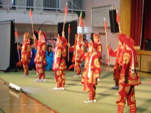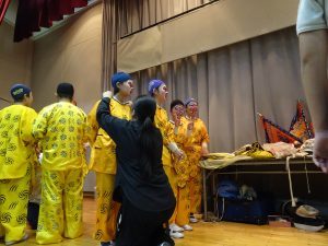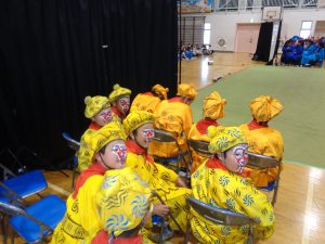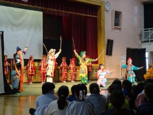 12月10日(水)、全校で芸術鑑賞会を行いました。中国の伝統芸能である「京劇」を日本全国で公演し普及活動をされている新潮劇院の皆様に来校していただき、6年生の代表児童とともに、すばらしい演技を披露していただきました。12月4日のワークショップに続き、この日は午前中にリハーサルや舞台裏の見学、メイクや衣装合わせなどを行い、新潮劇院のスタッフの方々が手取り足取りていねいに指導してくださいました。午後の本公演では、迫力ある演技を披露してくださり、約1時間の公演はあっという間に感じられるほどでした。一緒に出演した6年生も堂々とした演技で会場を大いに沸かせていました。新潮劇院の団長様をはじめスタッフの皆様方、本校児童のために感動あふれる演技と貴重な体験の機会をご提供いただき、誠にありがとうございました。