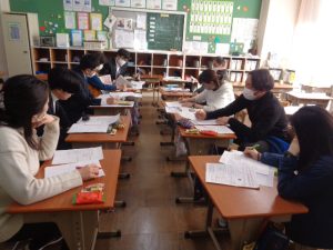 12月15日(月)、第3回授業研究が行われました。今回は、各学年3組の先生方に授業を公開していただきました。先生方は、子供たちからさまざまな考えを引き出しながら授業を進めてくださいました。子供たちは授業に集中し、真剣に考えながら意欲的に学習に取り組んでいました。放課後には、先生方で本日の授業を振り返り、よりよい授業にしていこうと熱心に話し合いを行いました。