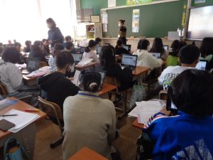 今日は、5年生のオンライン英会話の様子を紹介します。今月から、5・6年生は月に2回、フィリピン現地とつないだオンライン英会話学習を実施することになりました。5月初めの頃と比べると、子供たちの会話スキルは着実に向上し、今では自信に満ちた表情で英会話を楽しんでいます。