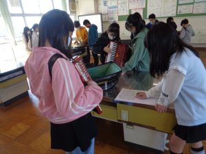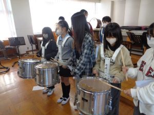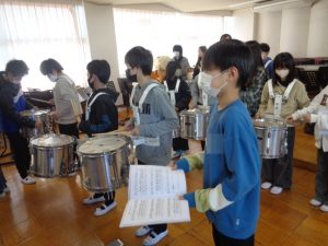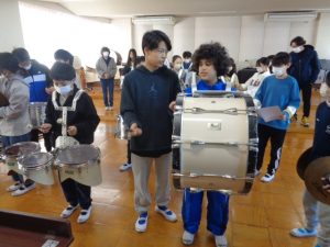 境小の伝統である鼓笛演奏。5年生の楽器の選定が終わり、楽器パートごとに6年生が最後のレクチャーを行っています。6年生から5年生へと技や思いを引き継ぐことも、境小ならではの大切な伝統の一つです。5年生は、6年生の思いをしっかりと受け止め、心を込めて素敵な音を奏でています。