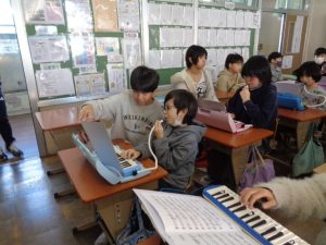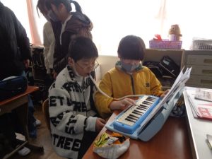 境小の伝統である鼓笛演奏。5年生の楽器の選定が終わり、楽器パートごとに6年生が最後のレクチャーを行っています。6年生から5年生へと技や思いを引き継ぐことも、境小ならではの大切な伝統の一つです。5年生は、6年生の思いをしっかりと受け止め、心を込めて素敵な音を奏でています。