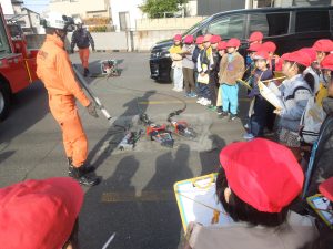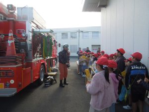 今日は、3年生の消防署見学がありました。子供たちは、消防署の方々が日々どのような仕事をしているのかを直接見学し、真剣な表情で説明に耳を傾けていました。消防車や救急車の仕組みについて教えていただいたり、実際に使われているさまざまな器具を間近で見せていただいたりする中で、驚きや発見がたくさんあったようです。命を守る仕事の大切さや、消防署の方々の努力や工夫を知り、子供たちは大きな刺激を受け、学びの多い貴重な時間となりました。