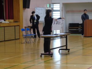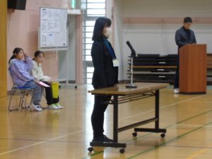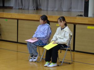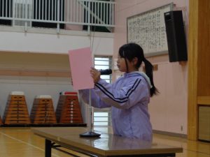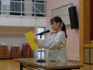 集会では、3年生と4年生の代表児童が、これまでにがんばってきたことや、これからの目標について、全校児童の前で堂々と発表しました。