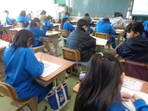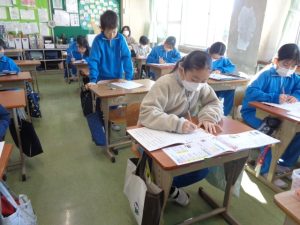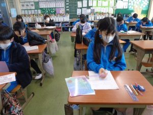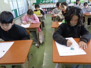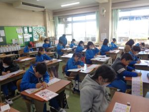 今朝は、読み聞かせボランティア「すばる」の方が来校され、3年生に絵本の読み聞かせをしてくださいました。子供たちは物語の世界に引き込まれていくような、真剣な表情で耳を傾けていました。一方、4年生は、明日から始まる初めての県学力診断テストに向けて、朝の時間から集中して学習に取り組み、教室には程よい緊張感が漂っていました。