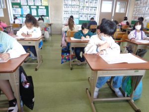 本日は、4~6年生が国語と理科、1~3年生が国語のテストに取り組みました。