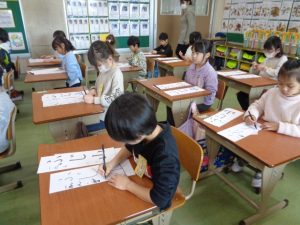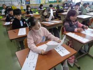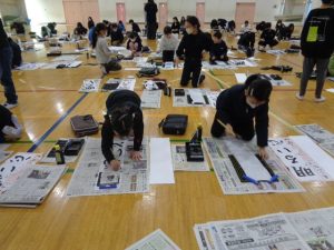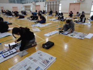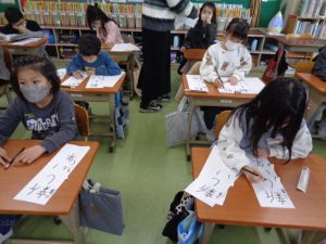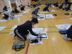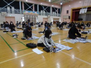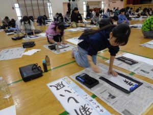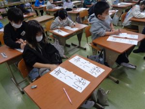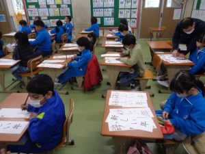 校内書き初め会 2026年1月20日 に zacky99 が投稿 校内書き初め会が、学年ごとに実施されました。1・2年生はフェルトペンを使い、3~6年生は習字の筆を使って、それぞれの課題の文字を書きました。教室や体育館で、子供たちは気持ちをこめながら、今年の書き初めに取り組んでいました。