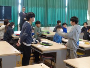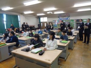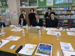 本日、宮崎県日向市より、本校の英語教育を視察するため、市長様をはじめ教育長、教育委員会の皆様が来校されました。境町が進めている英語教育の取組について説明を行い、6年生の英語の授業も参観していただきました。授業では、子供たちがいつも通り明るく英語で会話する姿が見られ、来校された皆様は大変感銘を受けている様子でした。