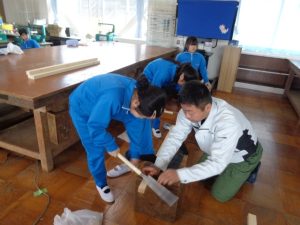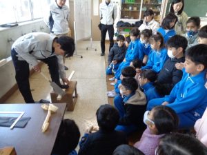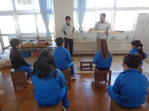 本日、3年生が大工さんの仕事について学習しました。講師として、地元の篠原工務店さんにご来校いただき、大工の仕事や道具について分かりやすく教えていただきました。
