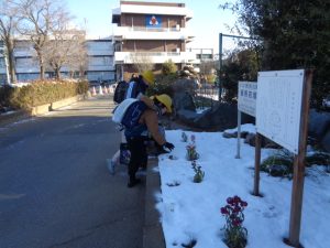 雪景色の中の元気なあいさつ 2026年2月9日 に zacky99 が投稿 昨日降った雪が残るグラウンドを横目に、今朝も子供たちは寒さに負けず、元気なあいさつをしながら登校してきました。更生保護女性の会の皆さんが、生活委員会の児童と一緒に、朝のあいさつ運動に参加してくださいました。