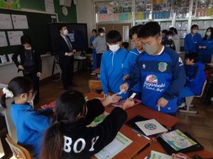昨日と今日の二日間、水戸証券の方をお招きし、金融についての出前授業を実施していただきました。授業では、会社の役割や株式会社の仕組み、投資の基本について、映像やグループワークを取り入れながら、児童主体で楽しく分かりやすく学ぶことができました。特にグループワークでは、社長を決めて会社を立ち上げ、商品を開発し、周囲から応援してもらう活動を通して、会社の仕組みや働くことの大切さについて理解を深めることができ、児童にとって大変貴重な体験となりました。