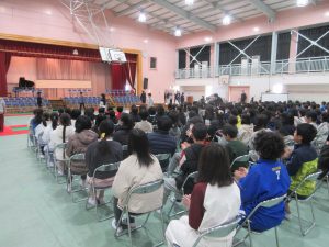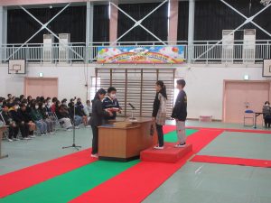 卒業式予行の様子です。卒業式当日参加できない4,5年生が一緒に予行を行いました。6年生の勇姿を目の当たりにし、6年生への感謝と自分たちも高学年としてがんばるんだという気持ちが高まってきました。6年生は一つ一つの動きに気持ちを込めて、予行に臨んでいました。境小に登校するのはあと4日、一日一日を大切に過ごしていきましょう。6年生、大変立派でした。