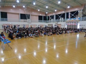 ノエラニ小学校の皆さんを歓迎する「ハッピーウェルカム集会」が開催されました。境町長をはじめ、議長、教育長、議会の皆様、町関係者の皆様、他校の校長先生方など、多くの方々にご出席いただき、盛大に歓迎することができました。心温まる、素敵な集会となりました。