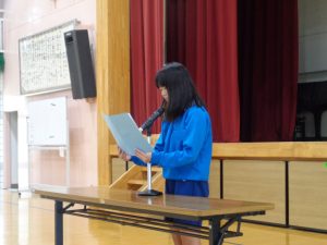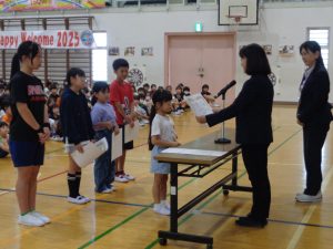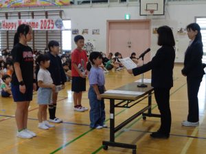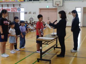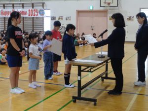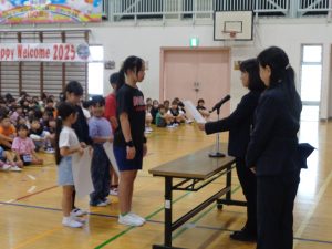 今日は前期の終業式が行われ、1年生と6年生の代表児童による作文発表がありました。表彰式の後には、東日本で優勝に輝いた6年生によるエアロビックダンスの披露もありました。今日で、1年の前半が終わります。これまでの前期の活動を振り返り、「自分に何ができて、何が足りなかったのか」を見つめ直し、後期のステップアップにつなげていけるといいですね。